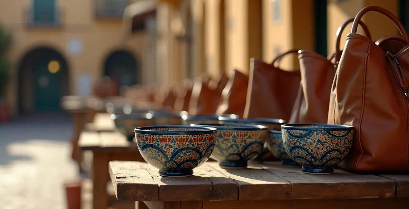 Der Gedanke an ein spanisches Souvenir weckt Bilder von sonnenverwöhnten Märkten, dem Duft von echtem Leder und farbenfroher Keramik. Doch die Realität für viele Reisende ist ernüchternd: Eine Tasche, die sich nach wenigen Wochen als billiges Kunstleder entpuppt, oder eine Keramikschale mit dem verräterischen „Made in China“-Aufkleber am Boden. Die Frustration ist gross, denn man sucht nicht nur ein Objekt, sondern ein Stück authentischer Kultur, eine greifbare Erinnerung, die über den Urlaub hinaus Bestand hat. Viele verlassen sich auf vage Ratschläge wie „in den kleinen Gassen suchen“, nur um festzustellen, dass auch dort die globalisierte Massenproduktion Einzug gehalten hat.